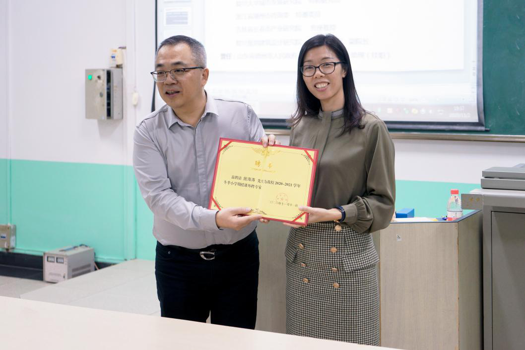 在讲座开始前,公司举行了隆重的欢迎仪式,并由李枚珍副经理为施海涛博士颁发聘书,以表达公司全体师生对施海涛博士的诚挚感谢。