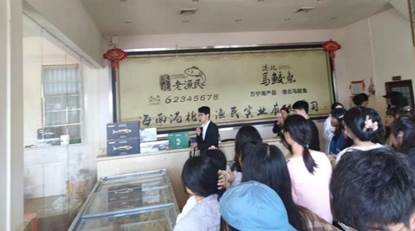 实习实践的第三站,在港北渔村,莫经理向同学们详细介绍了各类鱼类加工产品以及将店铺改造为民宿的构想。和乐镇很多村庄都是“空心村”,发展民宿有助于对当地房屋进行保护性改造,并通过旅游业发展实现乡村振兴。随后,莫经理还向同学们分享了他规划的一条契合沈晓明书记“休闲渔业”理念的旅游线路。通过对莫经理对同学们问题上的答疑,帮助大家对港北村的发展方向、存在的发展问题和特色的渔家文化等有了一定程度上的了解,并且进一步明确了规划的需求和方向。