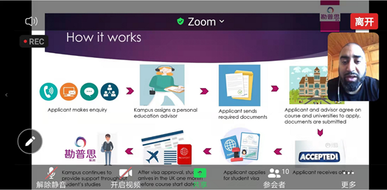 讲座先由Choudhry先生介绍英国留学的申请的整个流程以及申请所需要的材料以及注意的事项,随后 Hussain 先生介绍了勘普思集团以及集团可以给大家提供的免费留学申请服务,讲座的最后由思思老师针对员工的问题进行答疑。