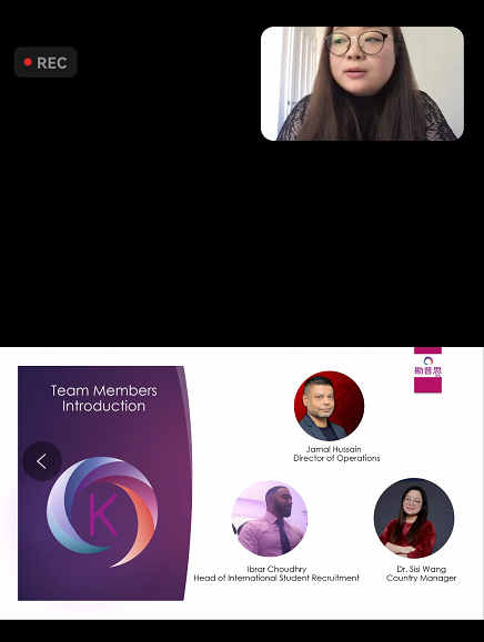 2021年9月24日,公司“面对面·HAITCers’”第二期学术活动于zoom上进行。本次讲座有幸邀请到了与公司合作的英国勘普思留学服务集团的3位专家(Jamal Hussain、Dr.Sisi Wang、Ibrar Choudhry)为公司员工讲解留学申请的流程和需要注意的问题以及公司可以为员工提供的免费申请服务等。