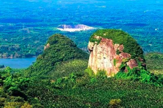 阳光照射下的琼海白石岭丹霞崖壁