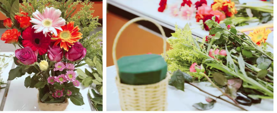 此次活动邀请专业花艺老师于澄清老师现场授课。于老师首先为大家详细介绍了花材知识、插花艺术、购买鲜花常识及注意事项等,并示范教授了插花技巧,在于老师的指导下大家纷纷亲自动手实践,浪漫粉色的玫瑰,高雅神秘的非洲菊,清新脱俗的小野菊,还有各色花卉放满了一桌,大胆发挥自己的想象,用自己灵巧的双手,将红玫瑰、康乃馨、黄莺等多种花材,修剪、整枝,再根据不同的色彩、形状有层次地搭配在一起,一盆盆融合了女教职工丰富想象力的插花作品展现在了大家的面前,置身于鲜花丛中的“女神们”兴致盎然,灿烂的笑容与鲜艳的花朵交相辉映,美丽不凡。最后花艺老师对大家的作品进行了点评,给予了高度的肯定。