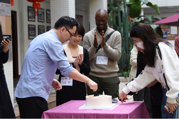 何映敏代表公司向韩国籍教师Jekyung Lee李济镜老师赠送了礼品,和公司教职工一起切蛋糕,分享了甜蜜的回忆与祝福,并和全体教职工合影留念。现场活动轻松愉悦,气氛异常热烈,大家畅所欲言,纷纷交换联系方式并交流了能够一起并肩工作的喜悦。活动结束后,教职工们久久不愿离去,仍在热情地交流,就犹如大家的友谊永不褪色。