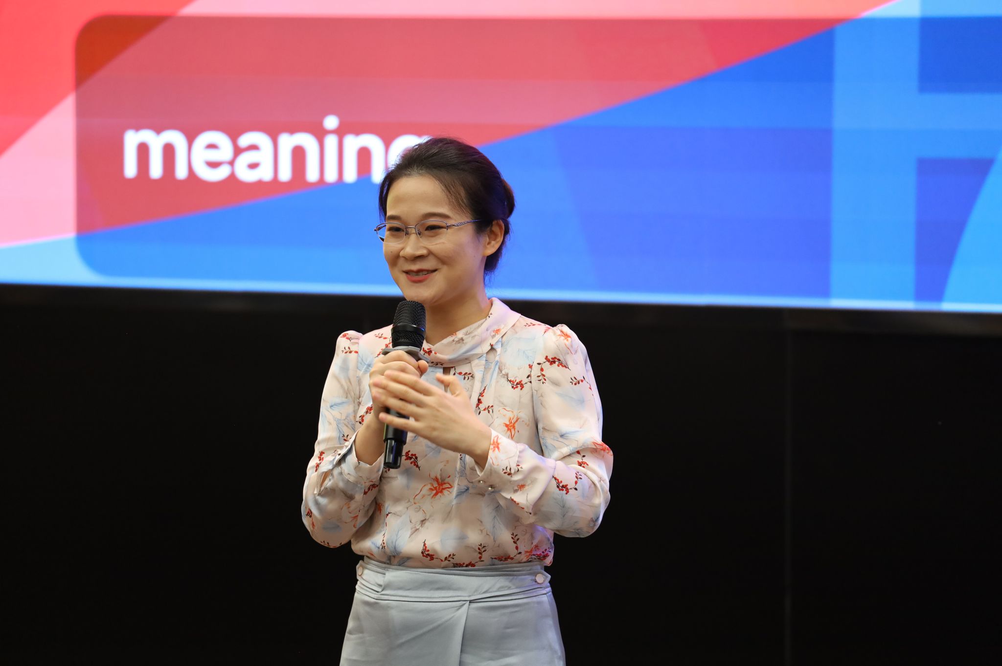 王琳向新生们介绍了公司的起源、合作模式、办学特色以及相关专业和部门设置等