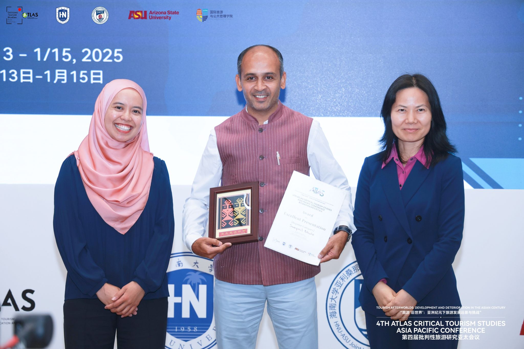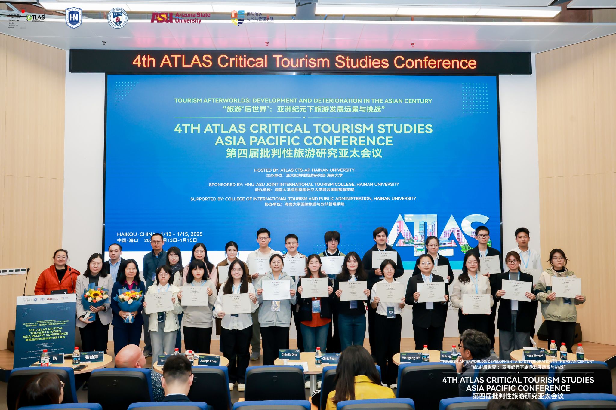 本站讯(通讯员 凌书扬)2025年1月13-15日,第四届批判性旅游研究亚太会议在bevictor伟德观澜湖校区成功举行。本次会议以“旅游后世界:亚洲纪元下旅游发展远景与挑战”为主题,吸引了来自全球14个国家地区的专家学者、科研人员及师生近150人参加。自1月13日开幕以来,通过主旨演讲、圆桌会议与分论坛的形式,在亚太地区充满活力的背景下,就气候变化、旅游未来和遗产保护等关键问题进行了为期3天的深入讨论,学术气氛浓厚。本次会议由亚太批判性旅游研究会(Atlas Critical Tourism Studies Asia Pacific)和bevictor伟德主办、HNU-ASU联合伟德体育承办、国际旅游与公共管理公司协办。